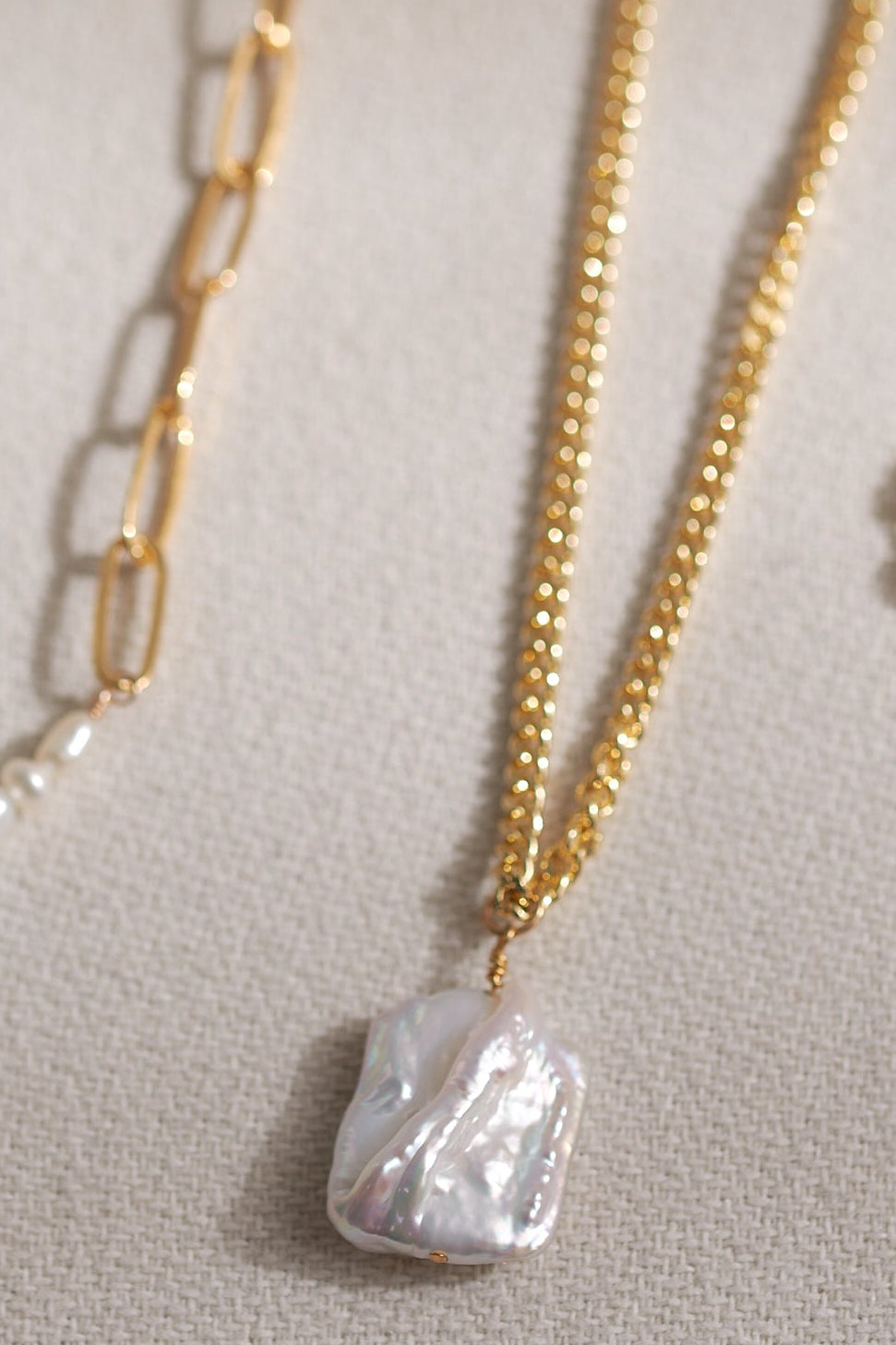 Made with gold-filled chains, pearls, and stones that hold their glow.